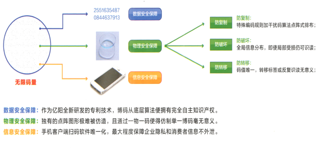 應用可變編碼中最前沿技術即薄碼技術,通過軟件硬件一體化的系統設計,以博碼云數據庫平臺為核心,實現包括博碼在內的條形碼產品從系統生成、分發、綁定在包材上印刷、檢測、關聯到查驗等全流程的數字化管理機制,最后,通過回傳到博碼云數據庫平臺(通過互聯網)上的各個環節所產生的數據進行比對,快速實現產品質量確認、產品流向把控、產品查驗結果的收集等功能,形成閉環系統。
